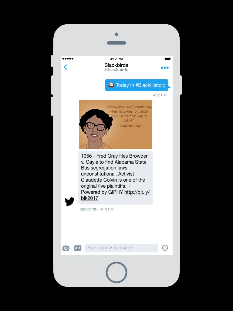 Throughout the month of February, the chatbot drove over 50K messages and secured national coverage in publications including Mashable, TechCrunch, and Adweek. The project also launched the beginning of a years-long experience serving as a Lead for Twitter Blackbirds.